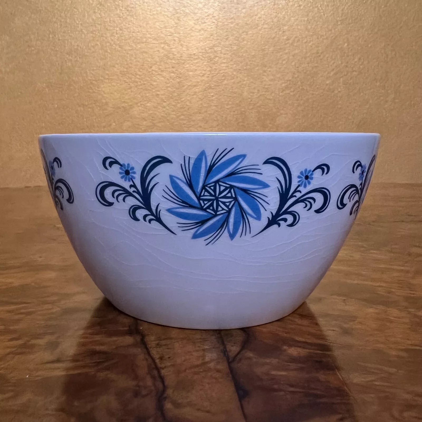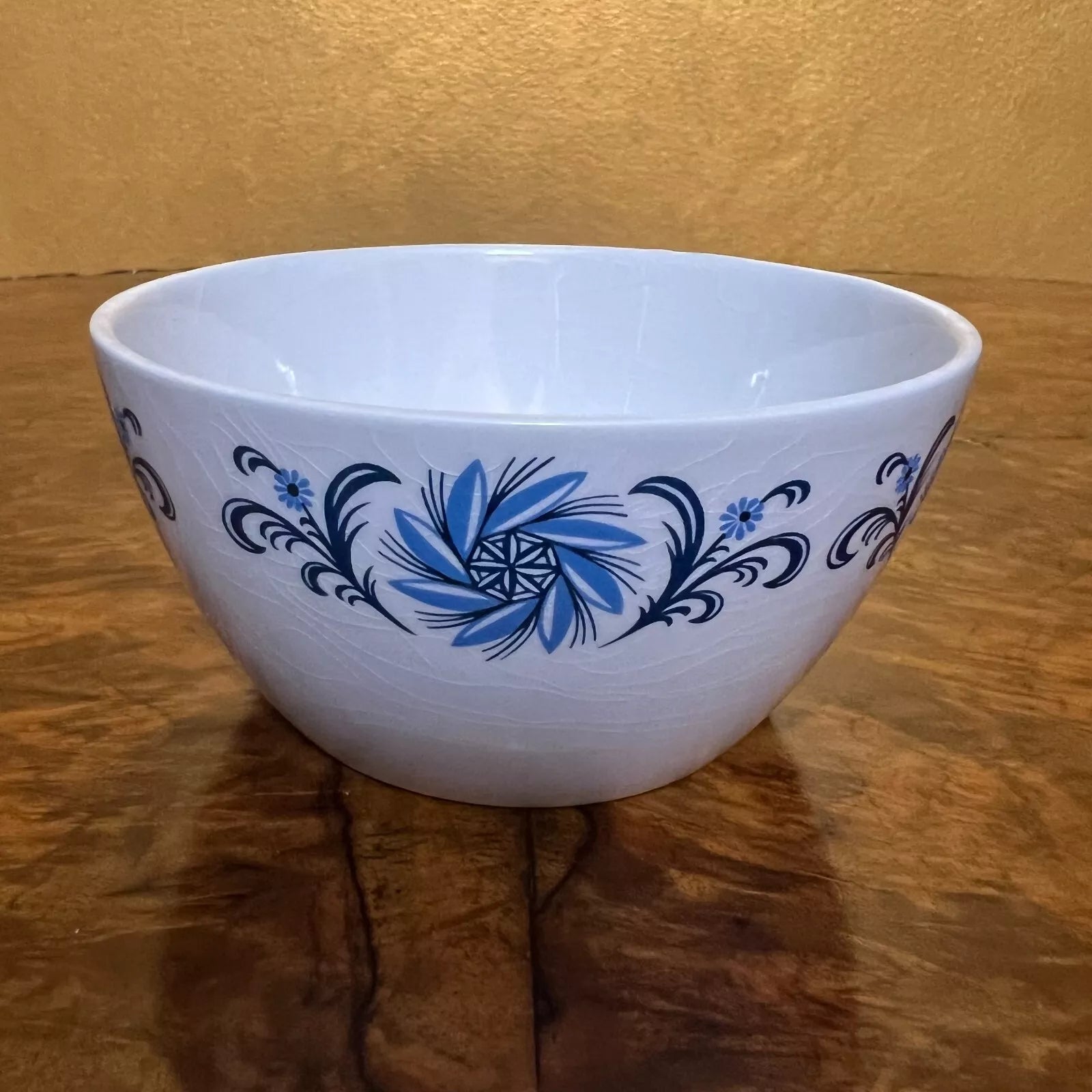 Blue and white print, crazing to some items, comes with 4 tea cups, 4 saucers, 4 side plates and sugar bowl, stamped glow white ironstone, Alfred Meakin