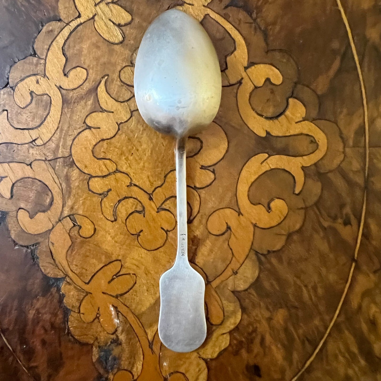 Description: Silver coffee spoons with Chinese writing embossed on the handle of the spoons
