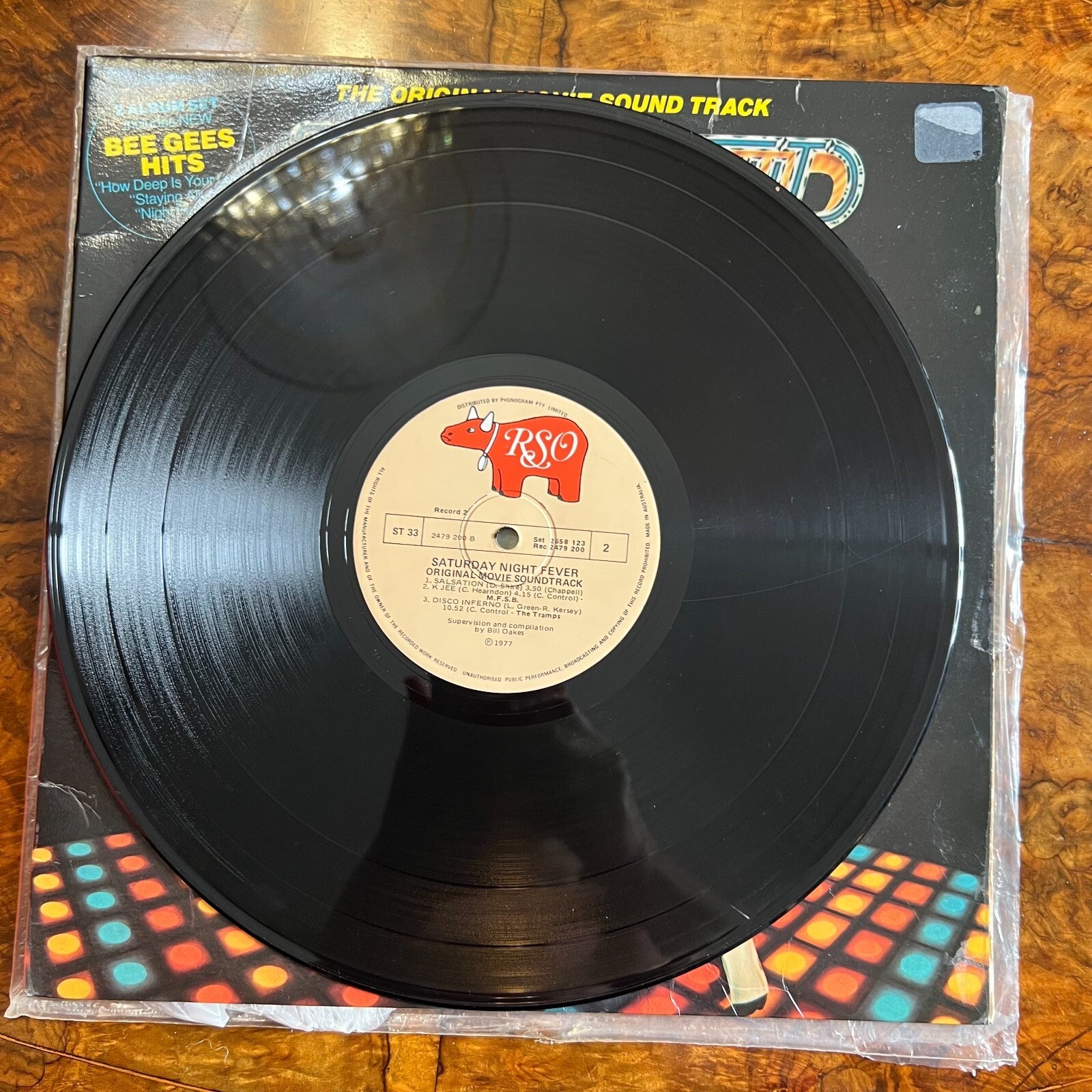 Description: Saturday Night Fever vinyl record, may have some scratches from use.