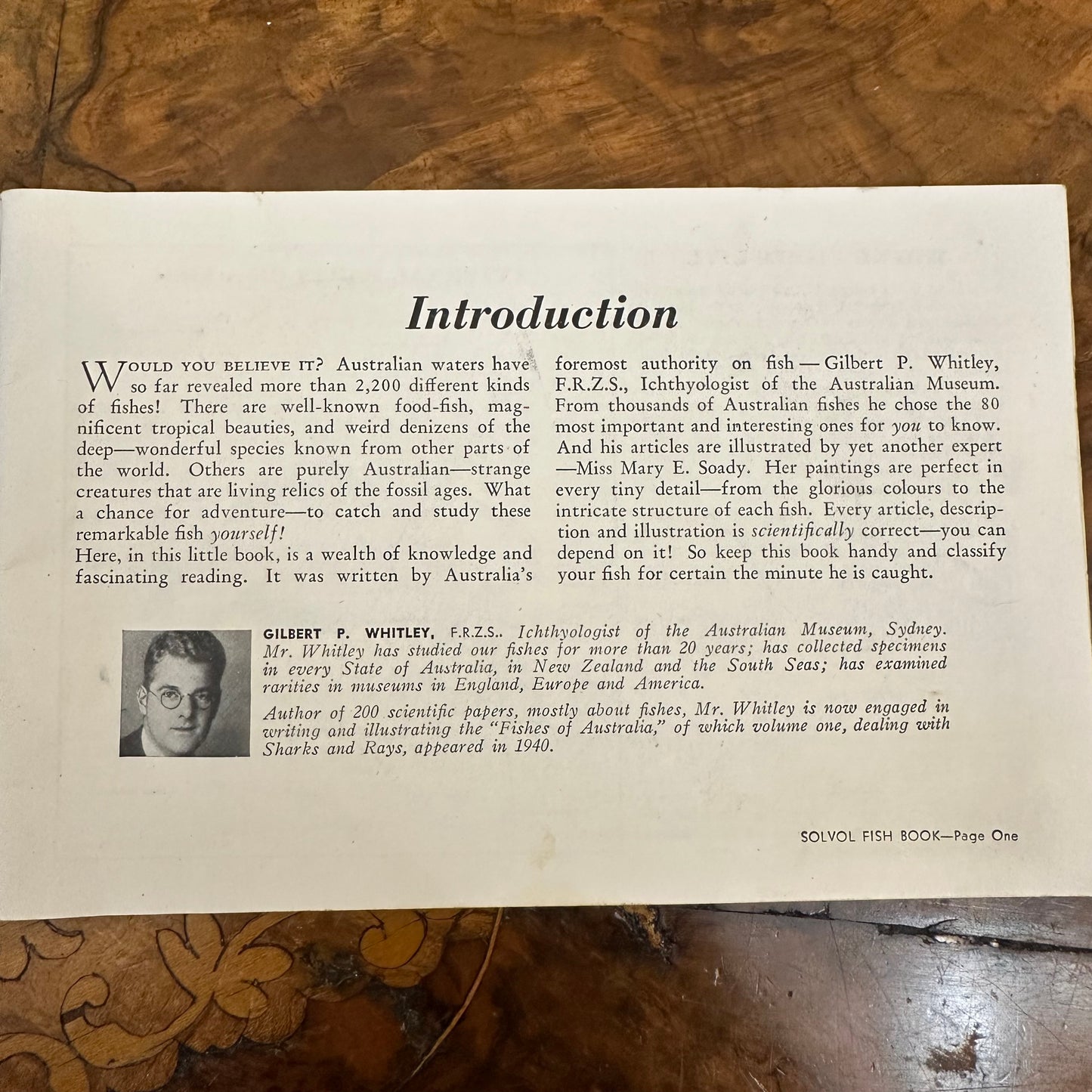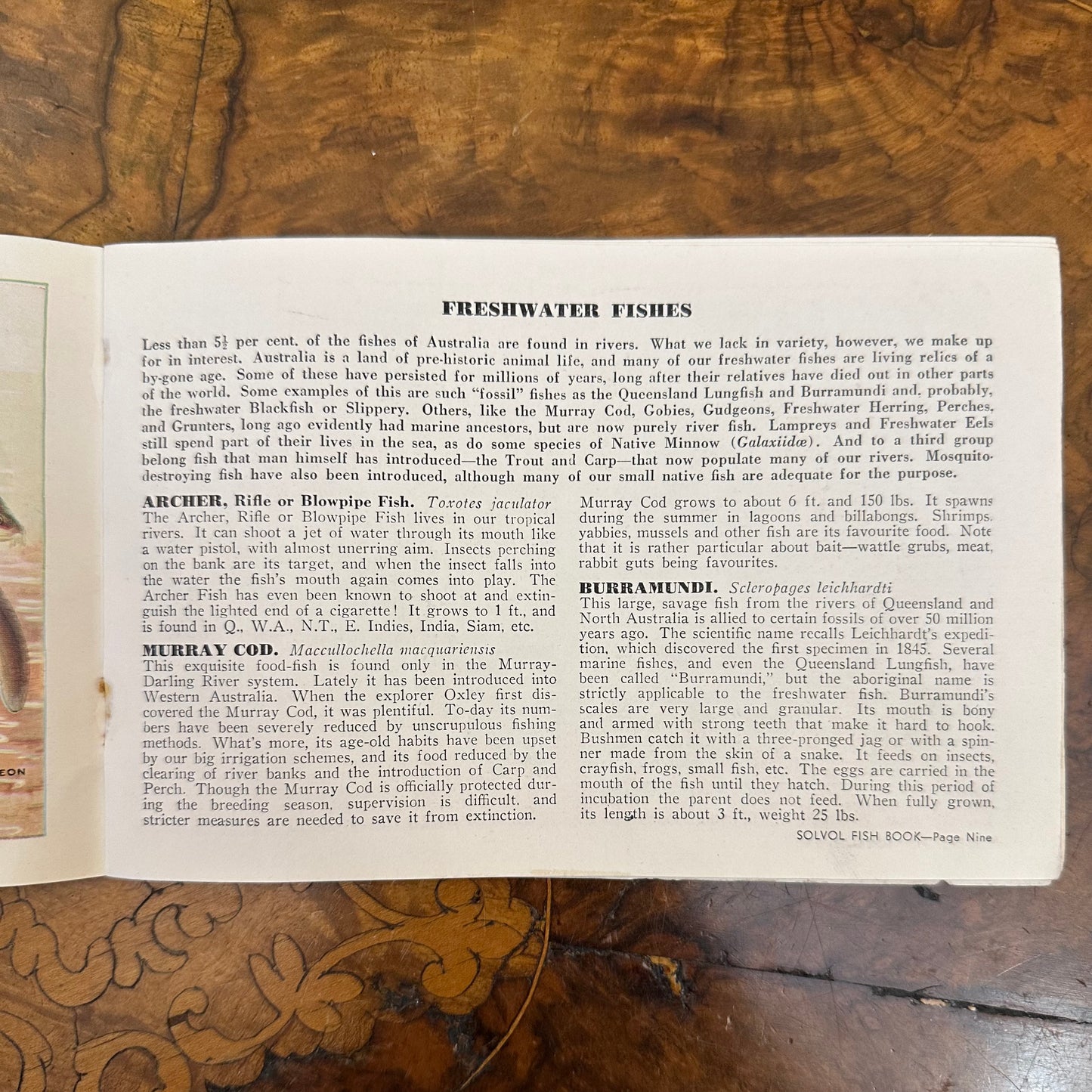 Description: Solvol fish paper book, has coloured pictures inside, some wear to book