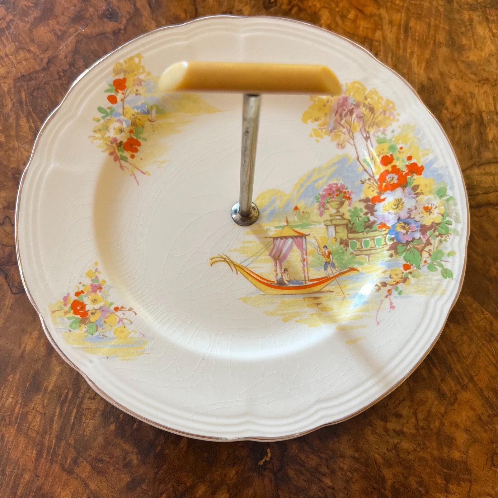 Vintage Alfred Meakin Boat Floral Print Cake Plate