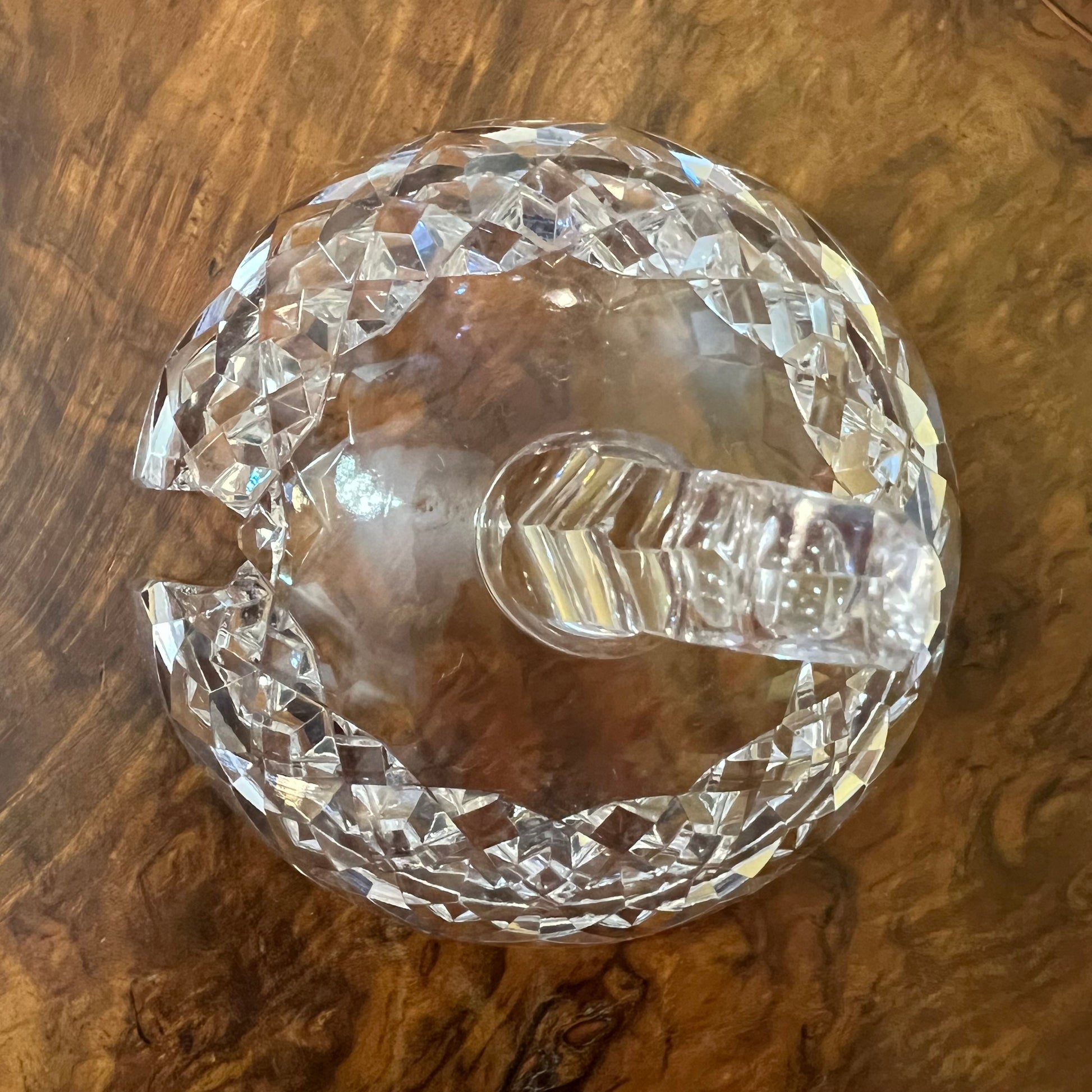 Crystal cut design jar, there is small chip to the rim of the bowl, and on the lid top detail small chips, some scratches
