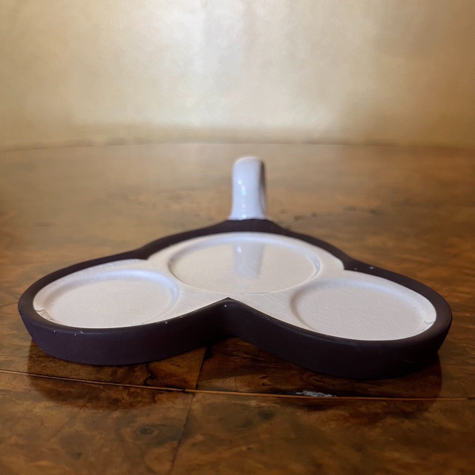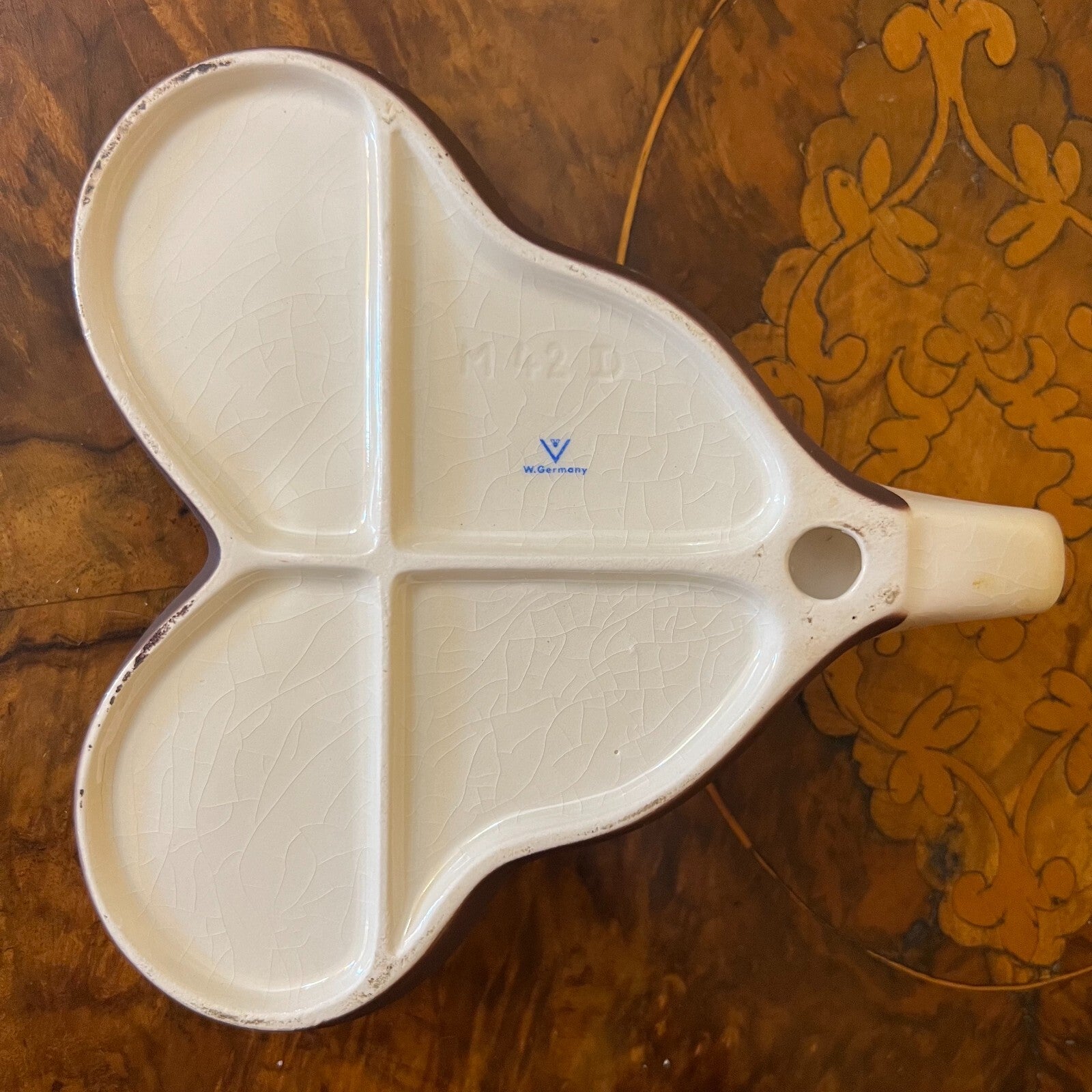 Description: Friar Tuck salt and pepper shaker with stand, there was another jar only have the top part which is Friar Tuck's head, crazing and slight wear to items