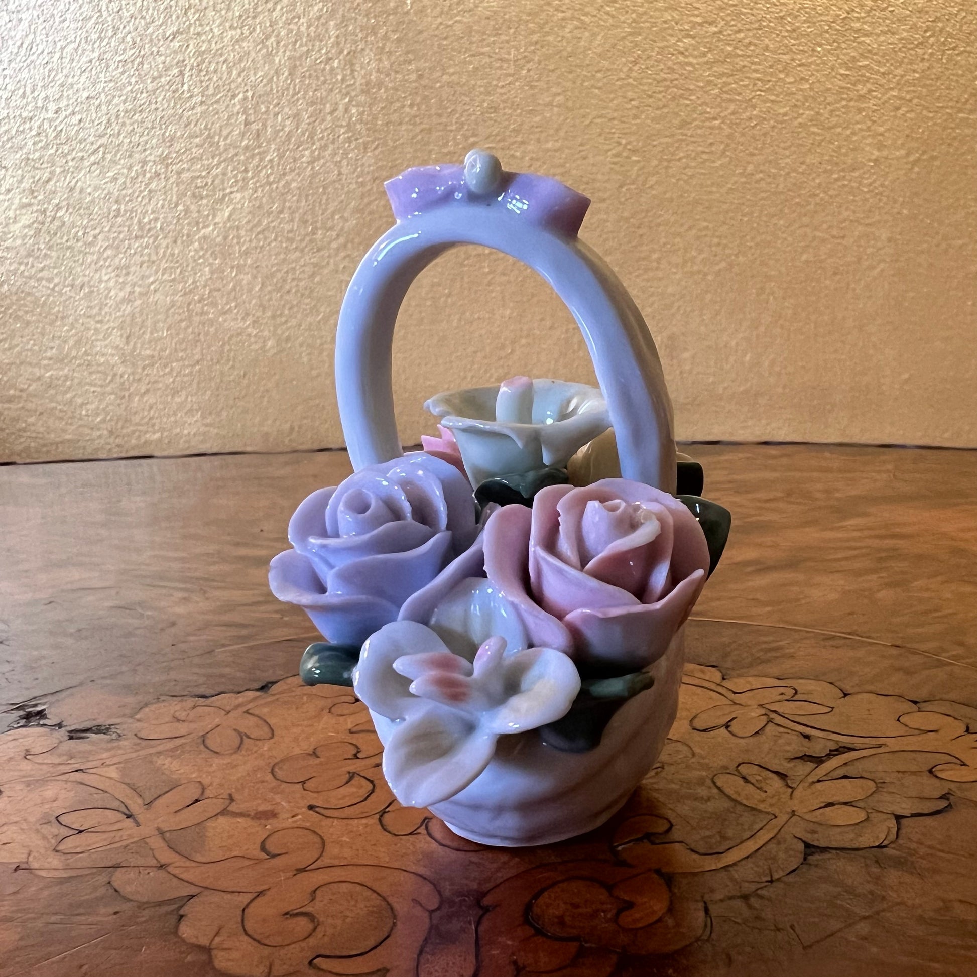 Vintage Porcelain Rose Basket Ornament
