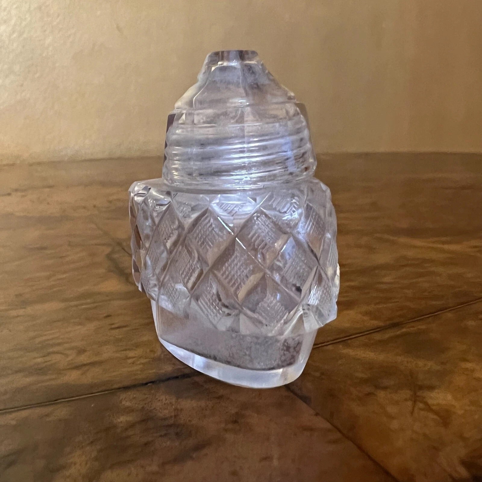 Description: The pepper top looks like it has cracks in the glass but it not sharp or feels cracked with touch, the salt pourer glass has discoloured white