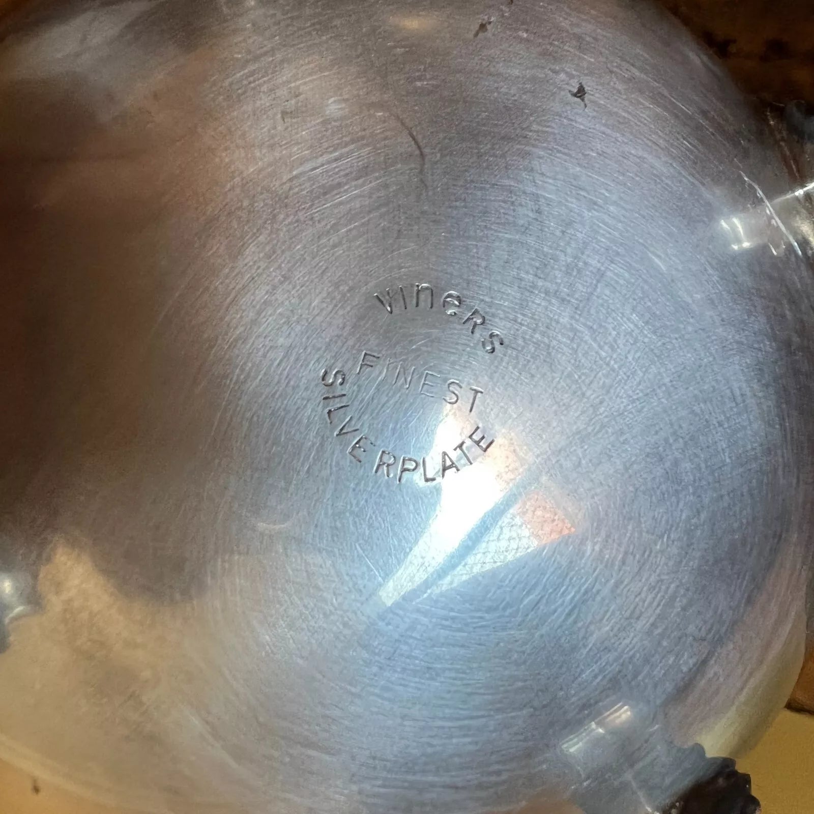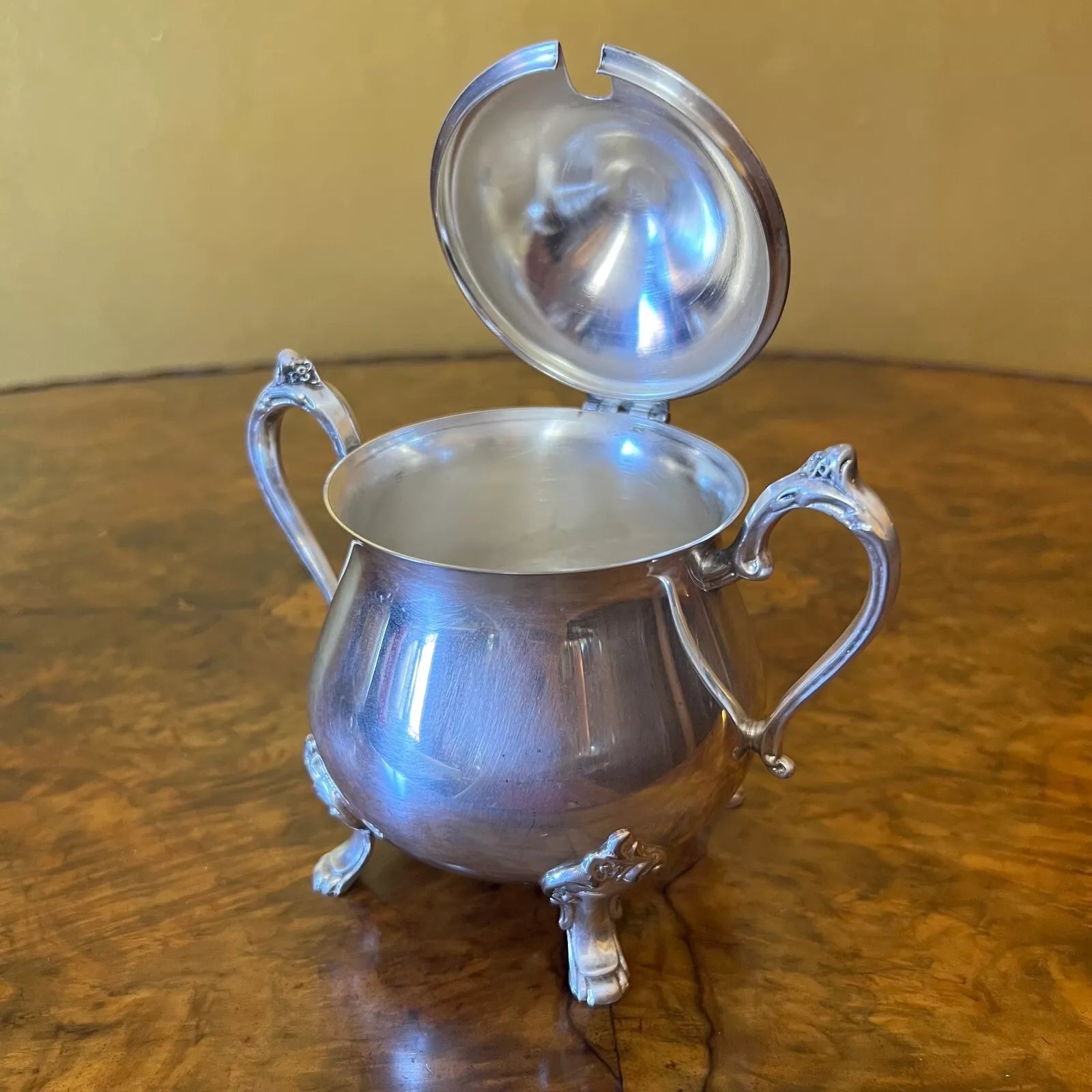 Tea pot, milk and sugar set, some wear and marks from use stamped Viners