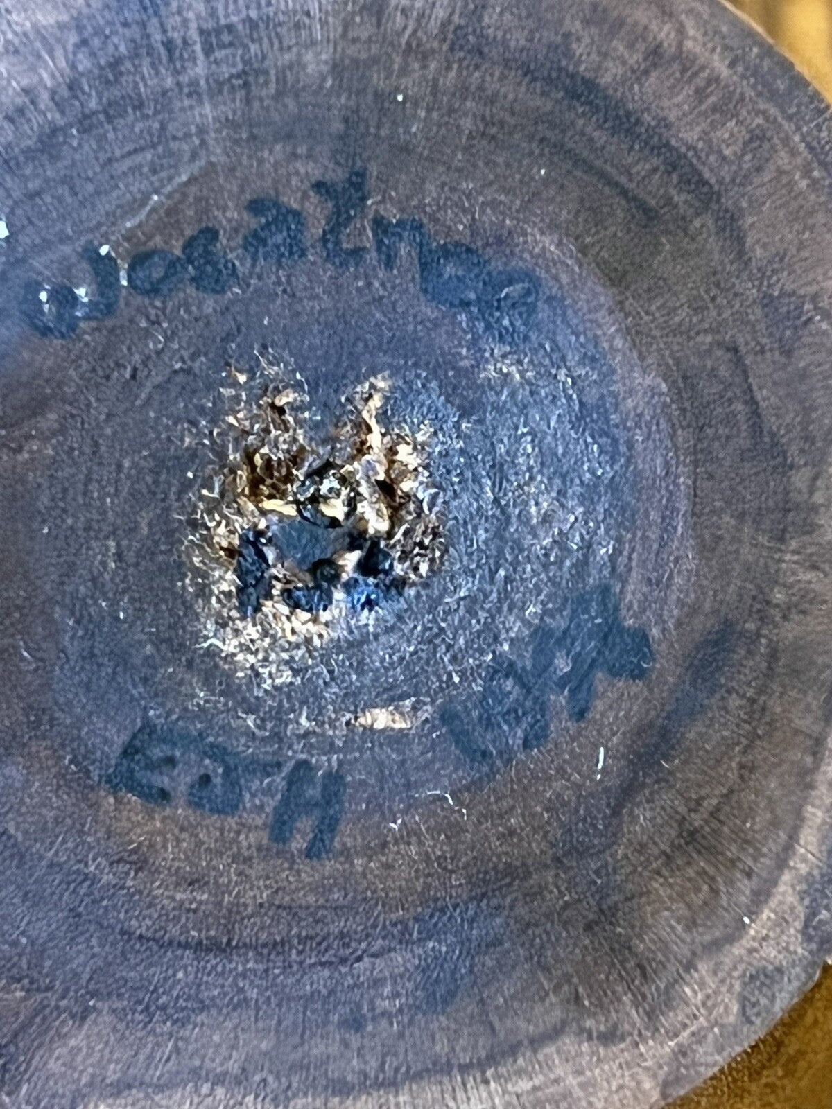 Description: Wosa tree wooden vase, made by EJH in 1998 in Queensland, marble like effect in the timber